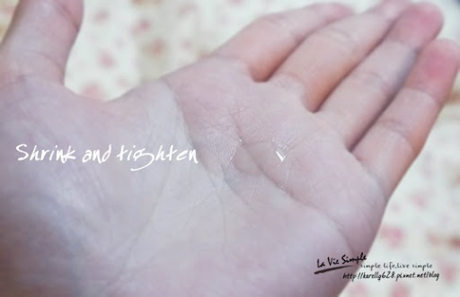 Shrink and tighten 質地很接近精華液 雖然一開始的感覺沒有特別的明顯 但是隔天晚上卻非常驚訝於自己的臉變得更加的滑順唷! 其實這組用起來真的挺有趣的! 使用後也的確有感覺到出油的速度比以往慢了一些,有一種非常驚訝的感覺 XDD