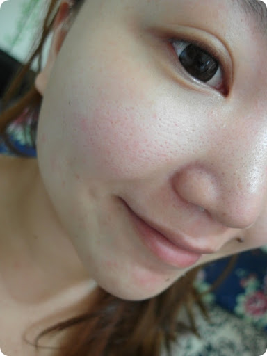 今天的天氣比較悶濕,因為早上有飄小雨,不足以降溫的雨量反而讓空氣更悶更黏了Orz 這樣的天氣很容易臉看起來就很黏,刷上蜜粉後比較粉嫩,看起來有柔焦效果,毛孔霧化的很好,遠看就幾乎看不出來了
