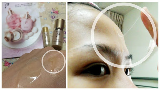 (2)shrink and tighten+夜間精華液,質地很像濃郁的薏仁漿再多點綿密感,